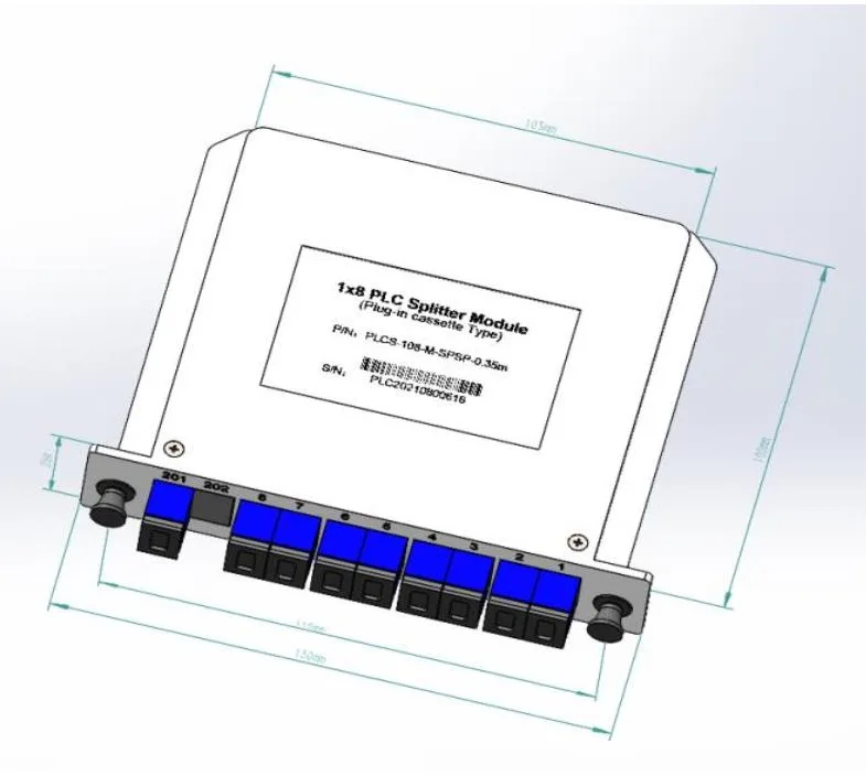 1x4/1 × 8 PLC ayırıcı kutu paketi 130x100x25mm, PLC ayırıcı kablo uzunluğu 0.35+0.05/-0m, 5pcs veya 9pcs mavi SC/UPC adaptörü.