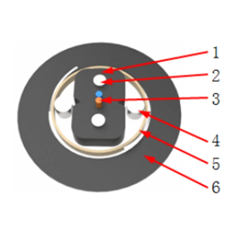 Zırhlı kanal yay tipi fiber optik damla kablosu, kelebek kurşun kablosunu merkezdeki optik iletişim alt birimi olarak yerleştirerek, her iki tarafa iki paralel takviye elemanı yerleştirerek, su bloke bant ve alüminum bantla sarılarak ve son olarak bir kılıf tabakası ekstrüde ederek yapılır.
